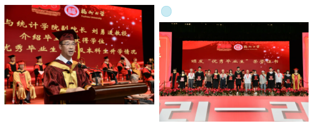副院长刘勇进教授介绍毕业生获得学位、荣获“优秀毕业生”以及本科生升学情况。光荣在党50年的老同志康金章教授、林啟宇老师、魏麟应老师、陈荣山副教授、李金炼副教授、李淑英副教授与陈笃钦研究员、郭文忠教授共同为受表彰的优秀毕业生颁发了荣誉证书。沉甸甸的一本证书,是对他们努力奋斗四年的莫大肯定,同时也饱含着对他们未来的真诚期待。