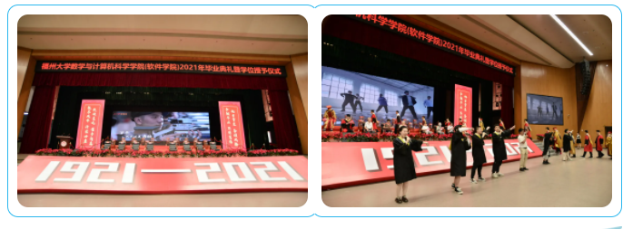 会前,一段精心制作的毕业祝福视频在会场缓缓播放,典礼现场洋溢着浓浓的温馨与感动。视频中,学院的领导、老师以及辅导员向全体毕业生送出了真挚的祝福,毕业生们也将说不尽的感恩语、道不尽的离别情化为一句句对学院、师长、同窗的美好祝愿。视频最后,全体师生跟随建党百年主题MV《少年》的旋律,齐声高唱。毕业生们精神饱满,热情洋溢,唱出了数计学子昂扬向上的气魄,也唱出了对党百年发展历程的礼赞与祝福。