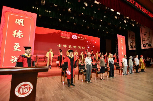 数学与计算机科学学院2021年毕业典礼暨学位授予仪式在宏晖文体综合馆隆重举行,为踏上新征程的数计学子慷慨壮行。99名2020届本硕博毕业生应邀返校参加毕业典礼和学位授予仪式,弥补去年因疫情防控未能如期举行毕业典礼的遗憾。现场,师生共聚一堂,一同分享毕业的兴奋、分别的不舍、启程的昂扬。