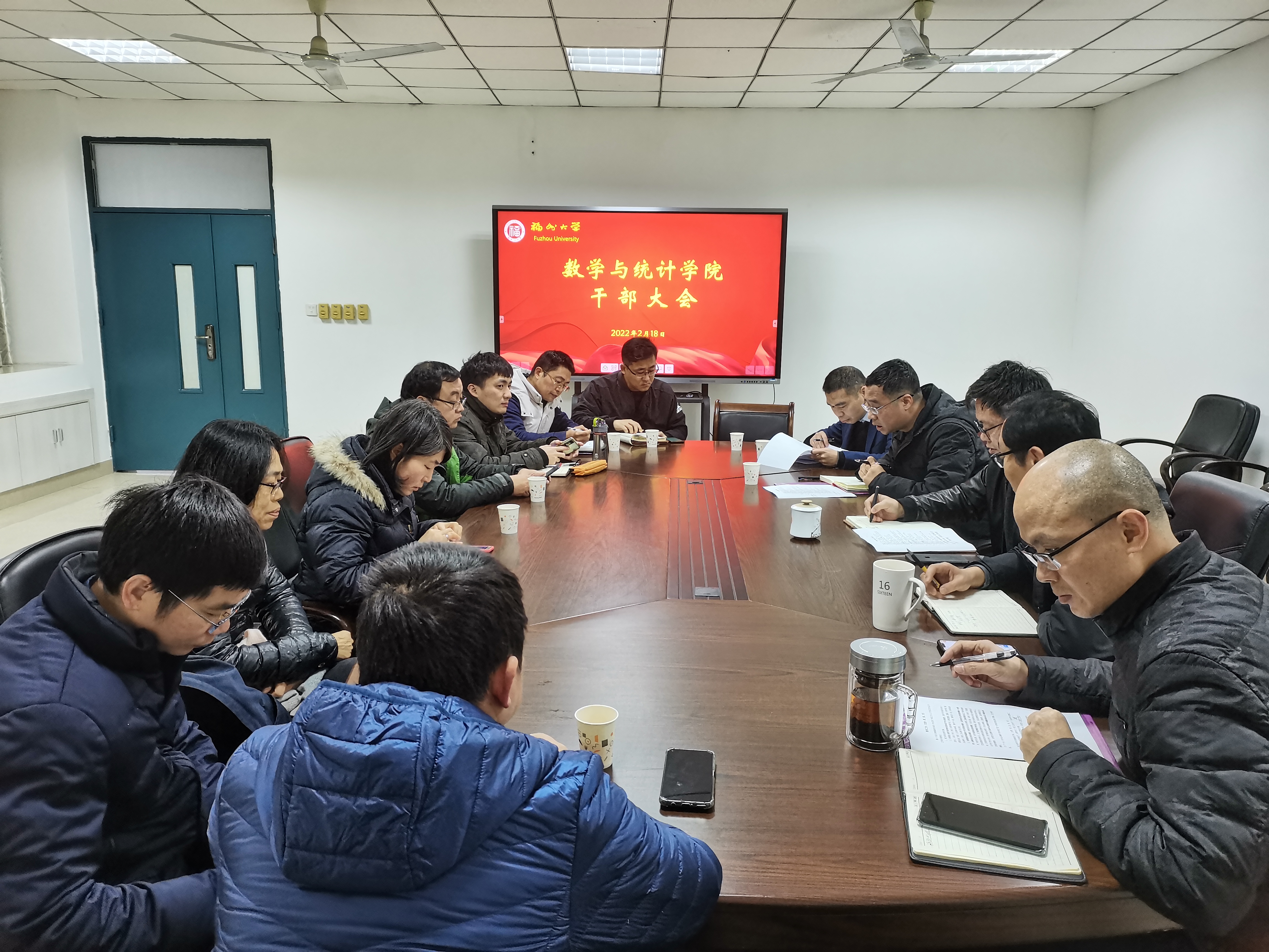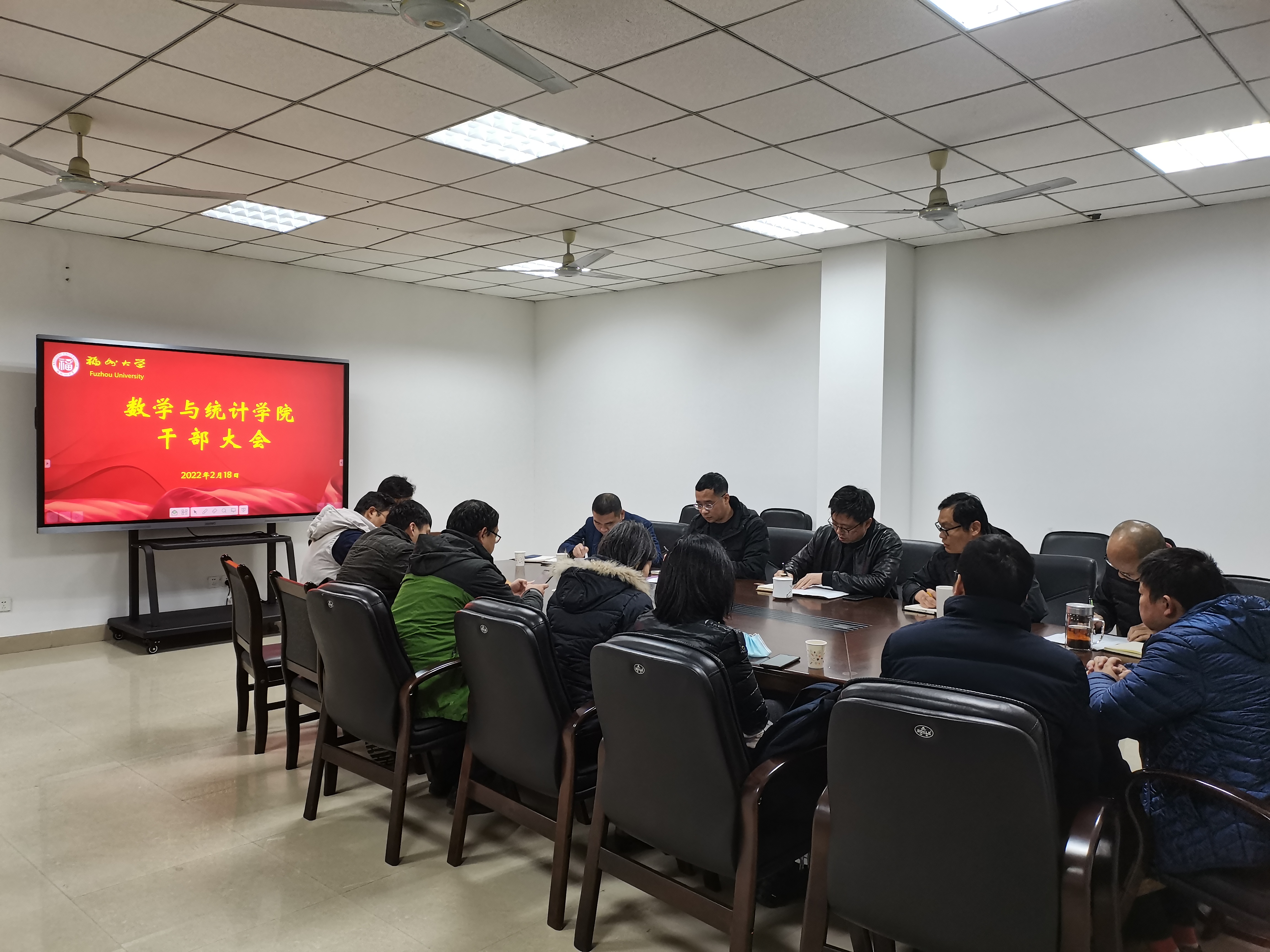 2月18日上午,我院在院408A会议室召开2022年春季新学期干部会议。会议由学院党委书记吴唐风主持,学院党政领导、工会主席、系主任、科级干部、教工支部书记参加会议。