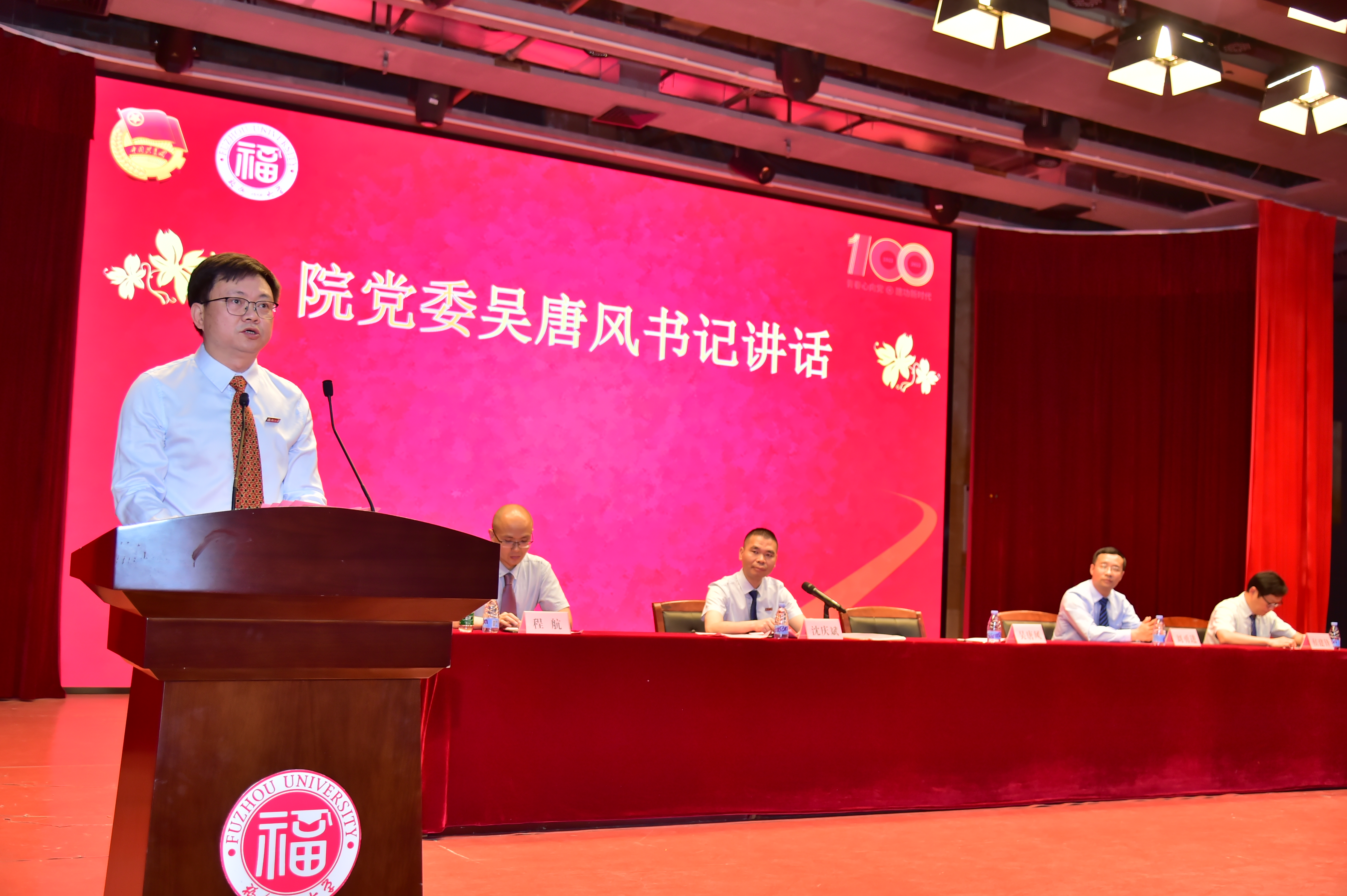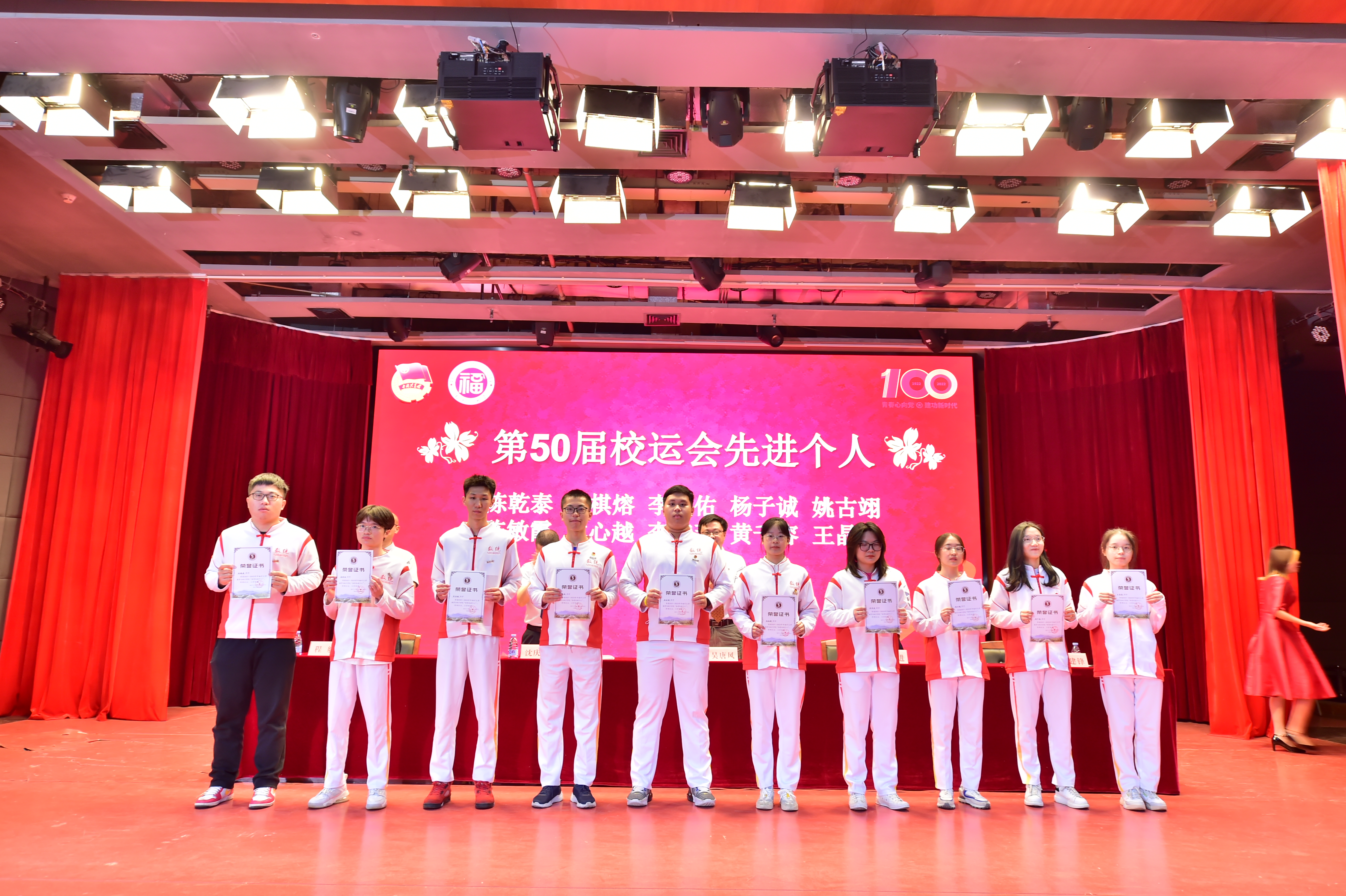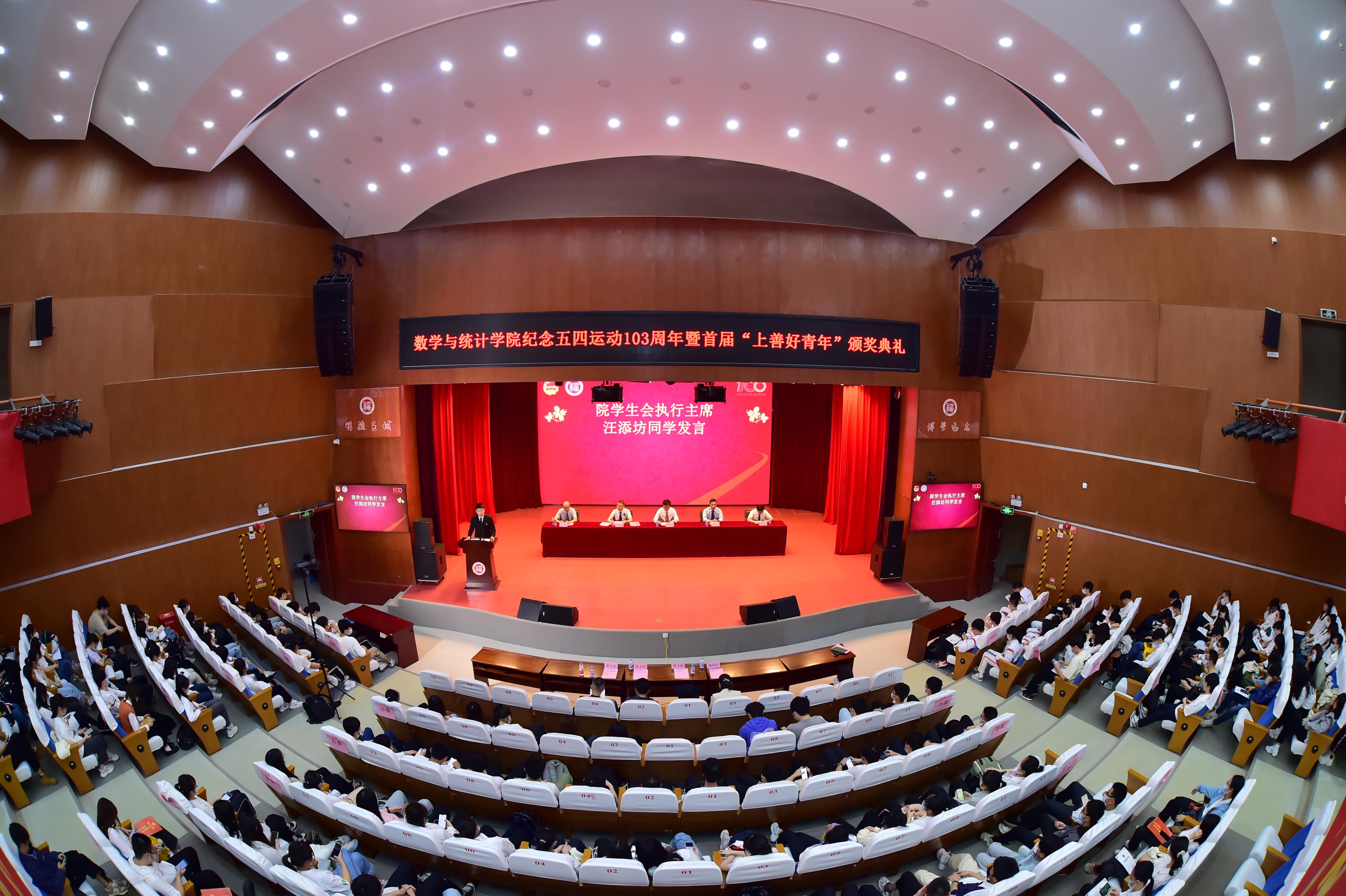 图书馆博学厅隆重举行。院党委吴唐风书记、院长刘勇进教授、副院长侯建锋教授、副院长程航副教授、数学与应用数学系党支部书记魏凤英教授、信息与计算科学系主任林启忠教授、统计与数据科学系主任黄文彬博士、统计与数据科学系党支部书记张文钊博士、院团委副书记权斌老师、2021级辅导员黄薇老师、兼职辅导员傅源源老师以及我院师生代表共五百多人共同参会。本次表彰大会由院党委沈庆斌副书记主持。