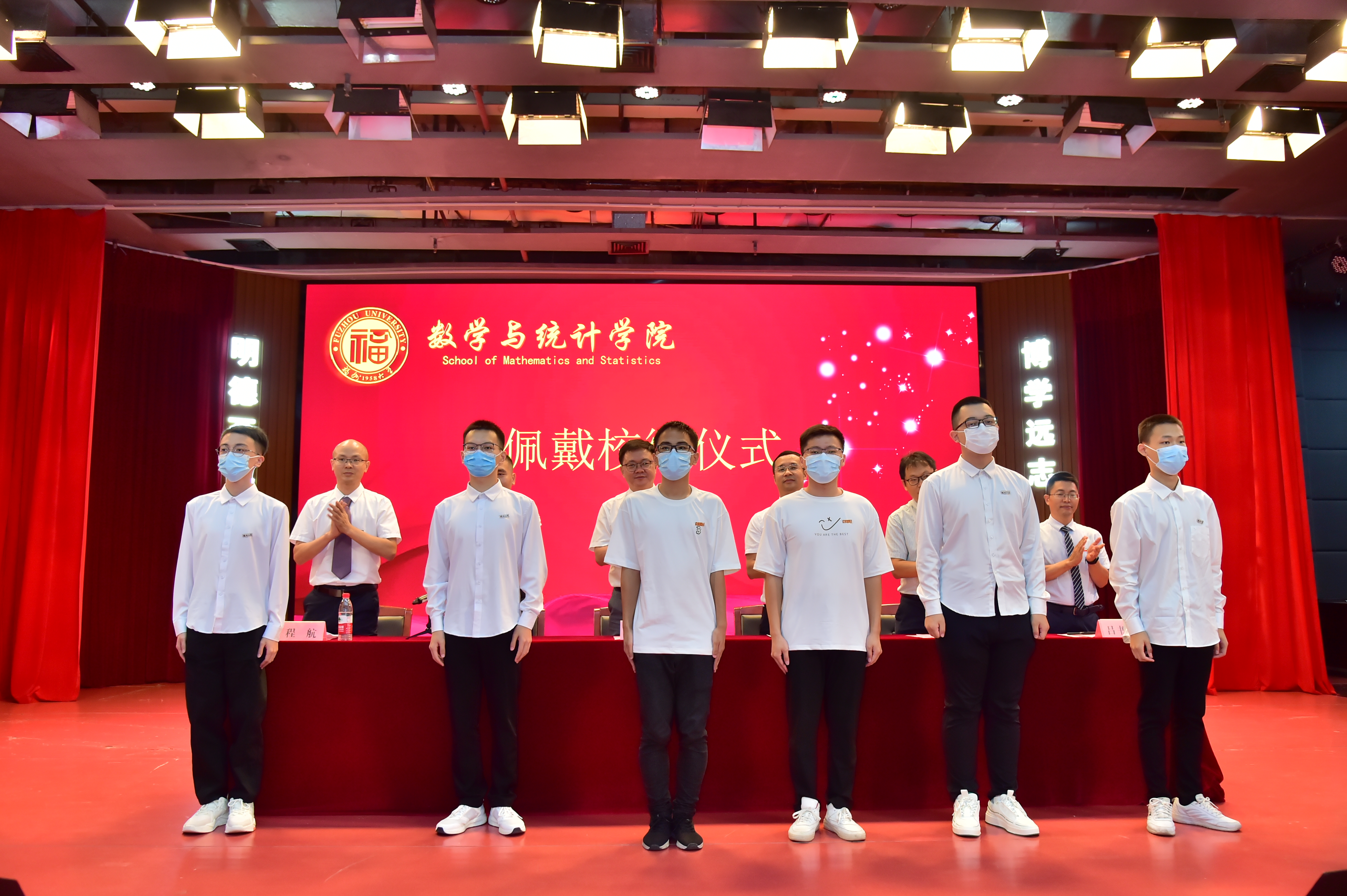 接着,学院领导为新生代表们佩戴上象征“福大人”身份的校徽,戴上校徽开启崭新征程“FZU”的象征数统新燕们即将展翅高飞。