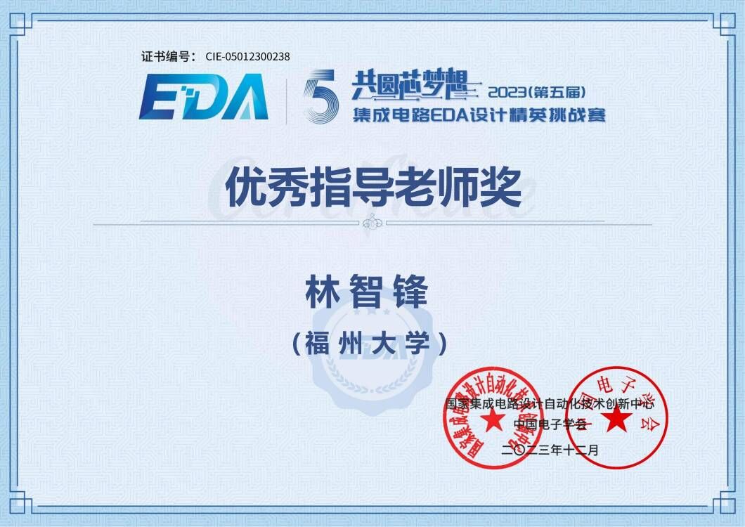 2021级博士生陈忆鹭作为队长与复旦大学组成的联队以赛题第一名的成绩获得了行芯赛题的全国一等奖,同时获得了行芯科技企业特别奖,在此向获奖者和指导老师表示热烈祝贺!