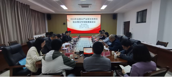 检查组首先听取了学院党委负责人关于2024年落实全面从严治党主体责任的工作汇报。郭文忠副校长对学院主体责任落实情况给予充分肯定,就进一步落实全面从严治党主体责任强调了要提高政治站位、明确任务要求、增强整改质效等相关要求。