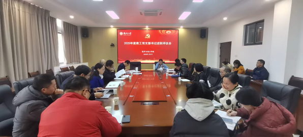 党委在学院312会议室召开2025年度教职工党支部书记述职评议会。学院党委委员、各教工党支部书记及各党支部支委参加会议。