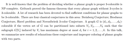 报告题目:Improper coloring of planar graphs