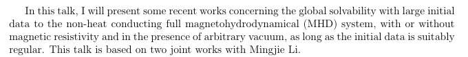 报告题目:Global solvability of non-heat conducting full MHD in 1D