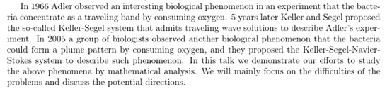 报告题目:Stability and instability of stationary solutions to the chemotaxis and related models.