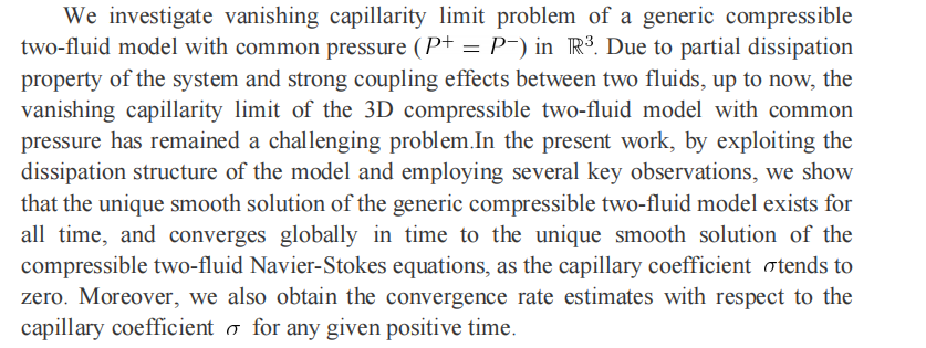 报告题目:Vanishing capillarity limit of a generic compressible two-fluid model with common pressure