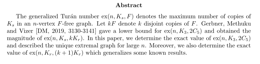 报告主题:Maximum cliques in a graph without disjoint given subgraph
