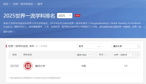 近日,高等教育评价专业机构软科正式发布了2025“软科世界一流学科排名”。浪live 数学学科发展迈上新台阶,首次跻身榜单,位列全球401-500区间。