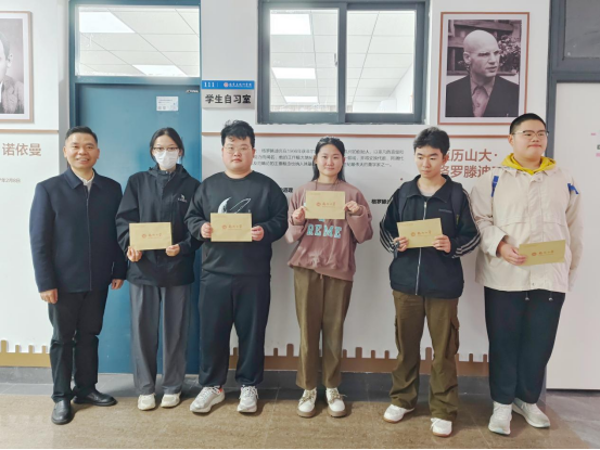 党委沈庆斌副书记在数统楼111学生自习室门口为10月份“自习达人”颁发了纪念品。这些获奖者中既有来自研究生的学术精英,也有大四毕业班的勤奋学子,以及充满活力的2023级同学们。