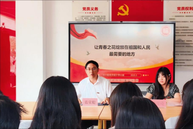 2023级经济统计学班级在学生公寓35号楼2楼“一站式”学生社区共享活动成功举办以“让青春之花绽放在祖国最需要的地方”为主题的班会。学院党委副书记蓝荣聪出席本次班会,并就主题展开深入拓展,为同学们上了一堂精彩纷呈、内涵深刻的党课(思政课)。辅导员许佳琦与班级全体同学共同参加,班会由班长郑炜城主持。
