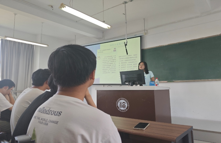 在分享会上,24级经济统计学一班的郭嘉祺同学首先向大家详细介绍了“扬帆计划”的相关信息,随后分享了她的实习经历及收获,最后还传授了写简历、投递岗位等方面的技巧。