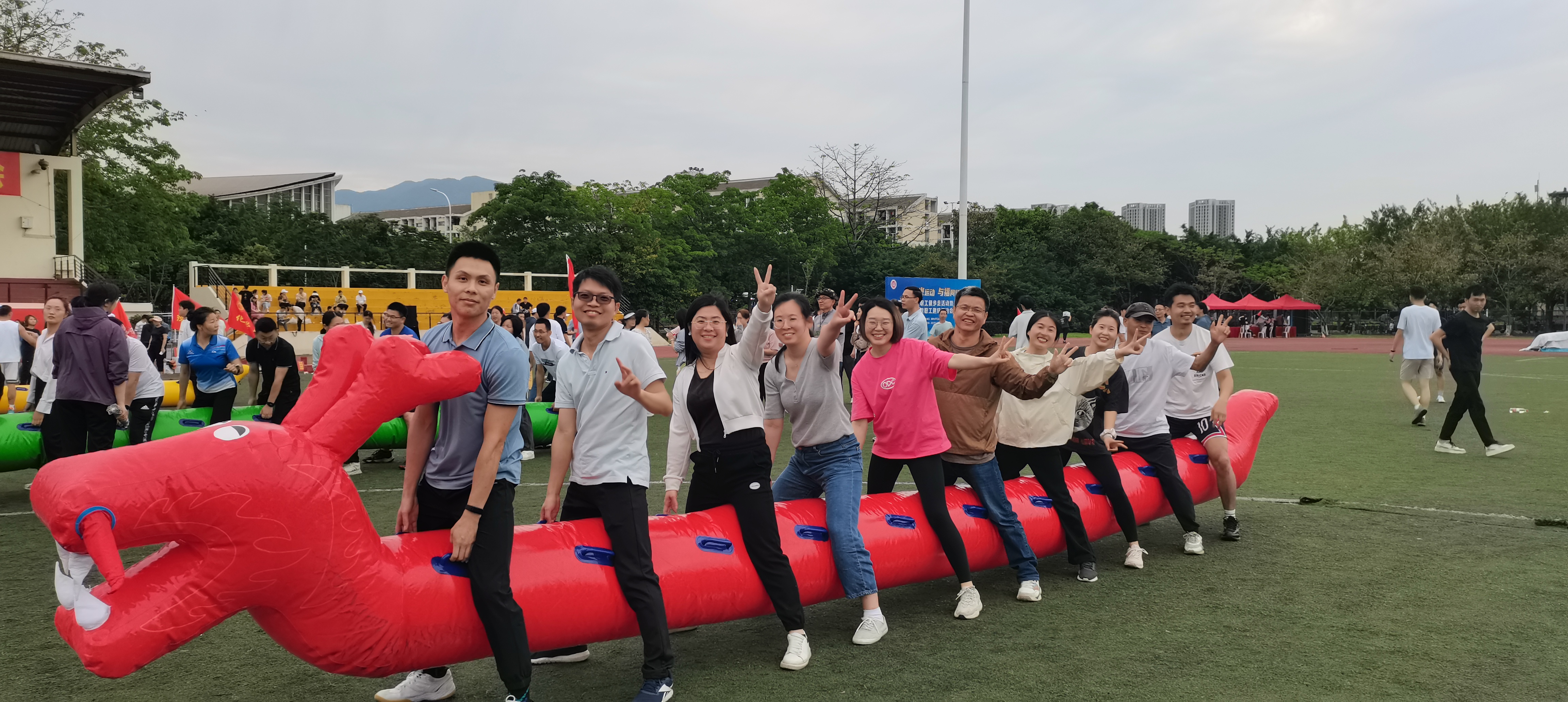 趣味运动会共设置“集体跳绳”、“同舟共济”、“提绳踏板”、“龙行天下”四个项目。每一个比赛项目都是团队的协作,是集体的智慧,更是激情的飞扬。我院近三年新进的教工积极报名参加,新老教师通力合作,奋力挥洒,围观的老师也激情澎湃,呐喊助威,现场气氛热烈非凡。