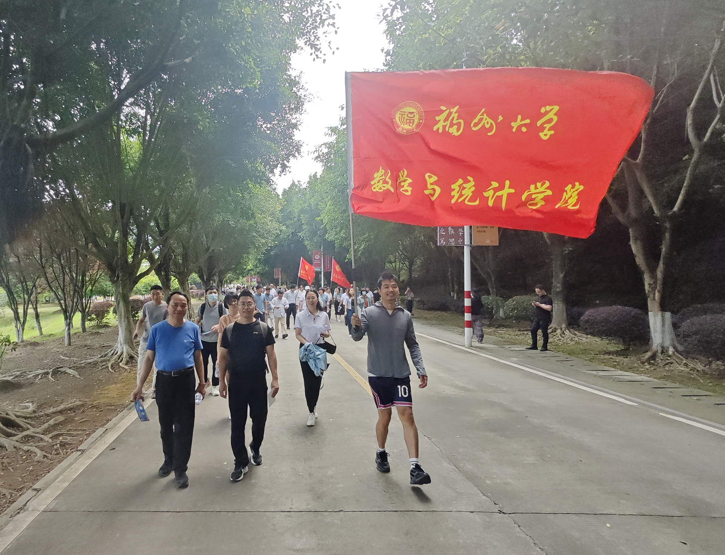 程玉敏主席以高昂的发令声启动健步走活动。行程路线始于旗山校区第一田径场,途经方境桥、行政南楼、火山地质园(梅园)、福友阁、湖边栈道、雕塑园、同心林等十多处校园主景致,全程约3.5公里。在学院领导的带领下,老师们挥舞着院旗,迈着矫健步伐,一边纳美景入眼帘,一边谈笑风生,其乐融融。