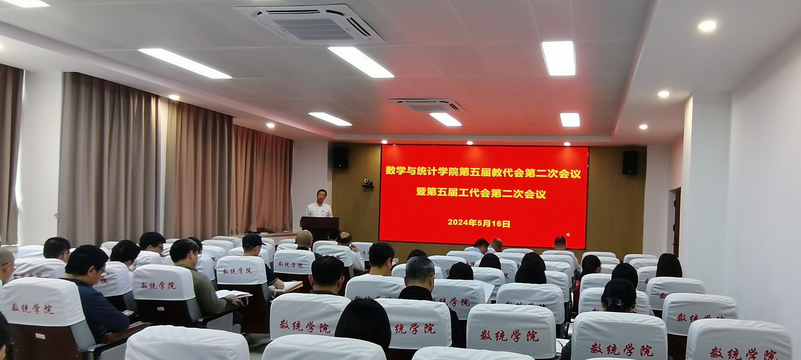 五届二次教代会暨工代会在学院208报告厅顺利召开。学院党政班子成员和正式代表出席会议,会议由院党委副书记沈庆斌同志主持。
