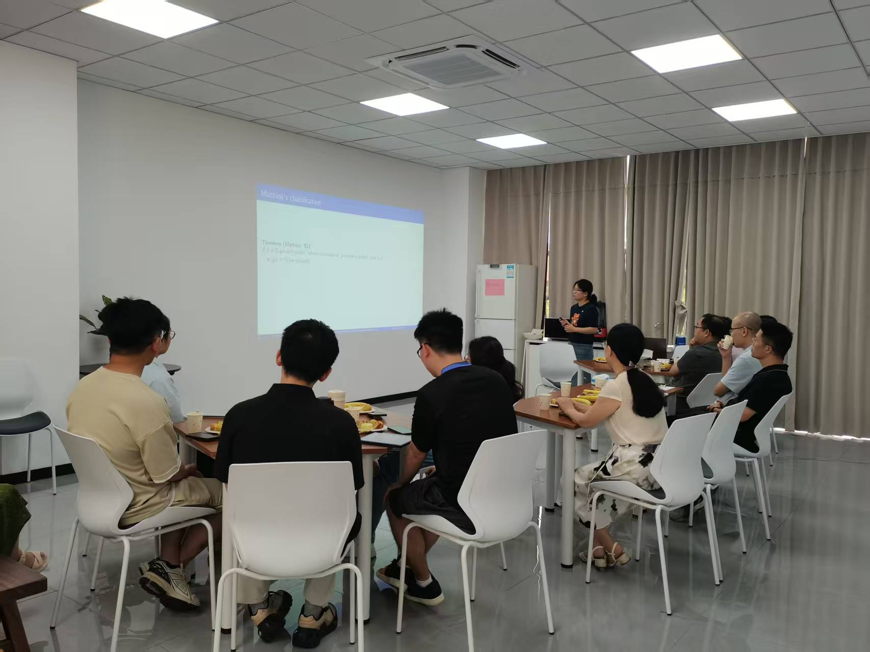 在主题报告环节,陈清花副教授围绕“Witt 代数的包络代数的非诺特猜想” 展开分享。她不仅深入剖析了团队在该问题上的研究进展,细致讲解核心突破与技术路径,还结合国外访学经历,分享了海外顶尖科研机构的学术氛围、创新模式及跨学科合作经验,为在场教师带来前沿科研视角与实践参考。