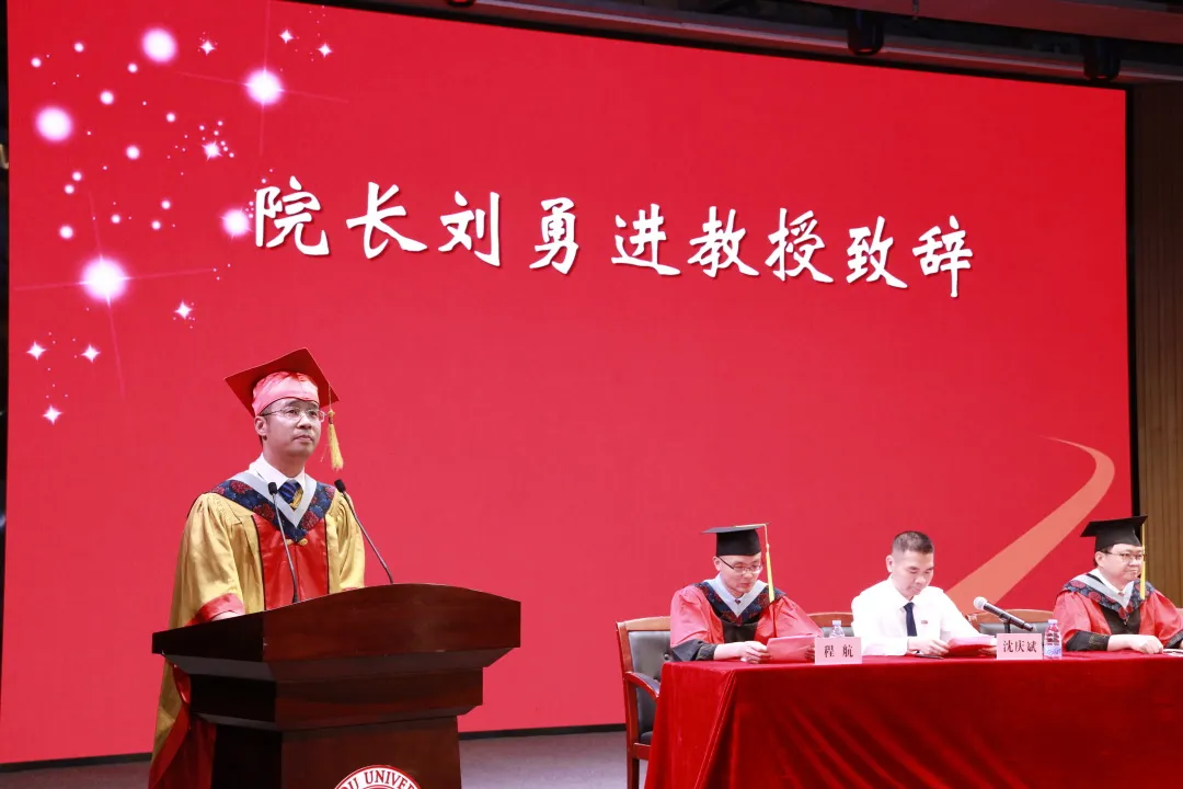 院长刘勇进教授为毕业生们作了毕业寄语。他向同学们的顺利毕业表示祝贺,回顾了同学们与学院同奋进、共成长的难忘经历,并以师长身份向即将奔赴人生新的大考的同学们提出几点建议:
