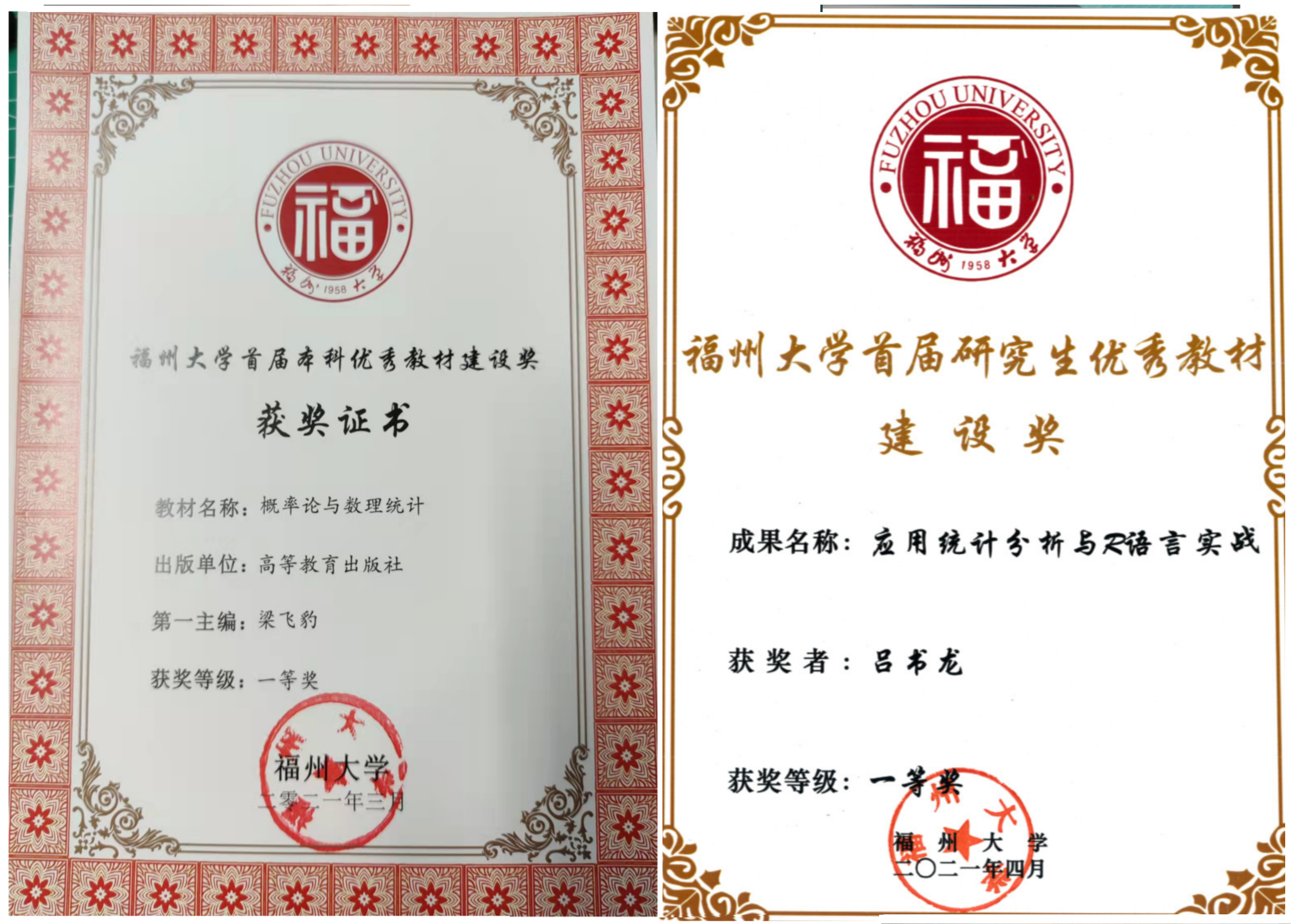 学院长期致力于优质教材的研发与编撰,大力鼓励并推动教师组队开展教材建设,提供政策与经费支持。目前学院教师已在本科与研究生的公共课与专业课两个领域创作并出版了10 多部教材,覆盖高等数学、概率论与数理统计、线性代数、泛函分析、统计计算、应用统计等多个数学与统计分支,并有2部教材获得浪live 首届教材建设一等奖。