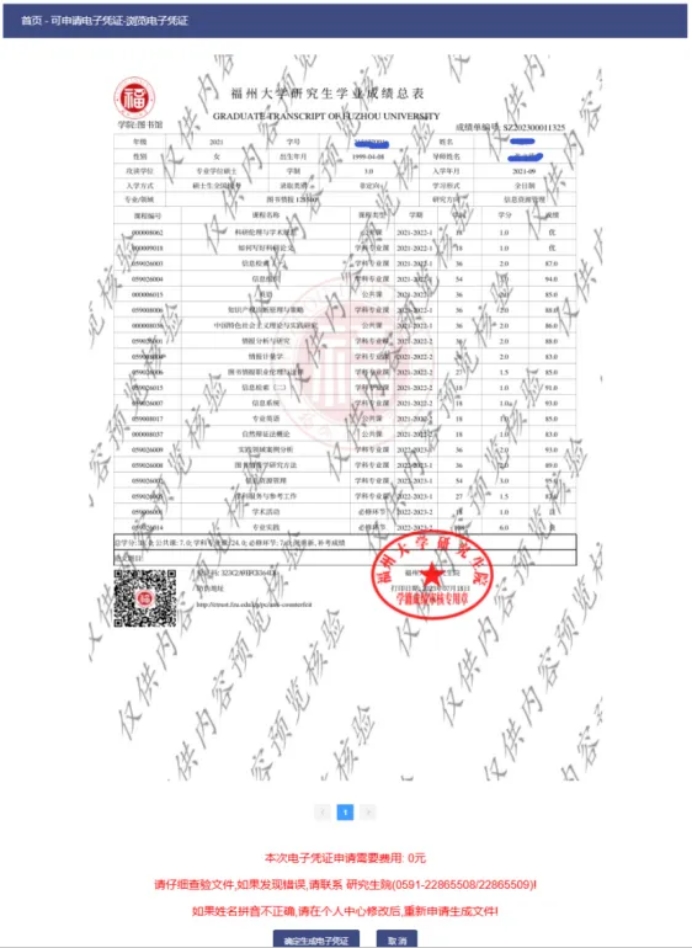 研究生中英文电子成绩单