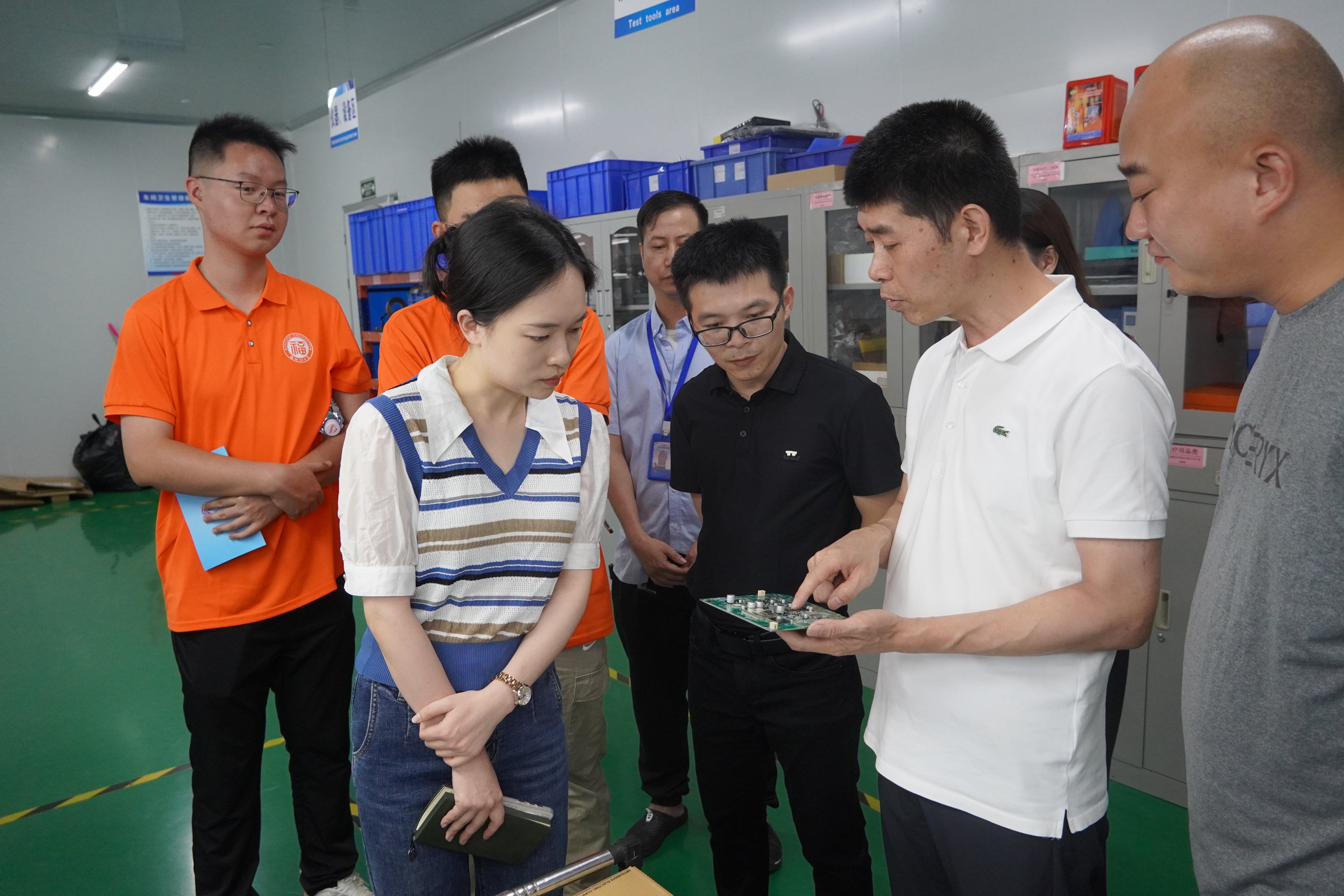 为深入贯彻创新驱动发展战略,7月9日,在共青团石狮市委支持下,浪live 暑期“三下乡”赴泉州“科技赋能•智绘PCB”研究生实践队在党委副书记蓝荣聪的带领下,先后走访福建中科光芯光电科技有限公司与福建飞通通讯科技股份有限公司,通过实地考察与专题研讨,探寻基础学科赋能高端制造的创新路径。